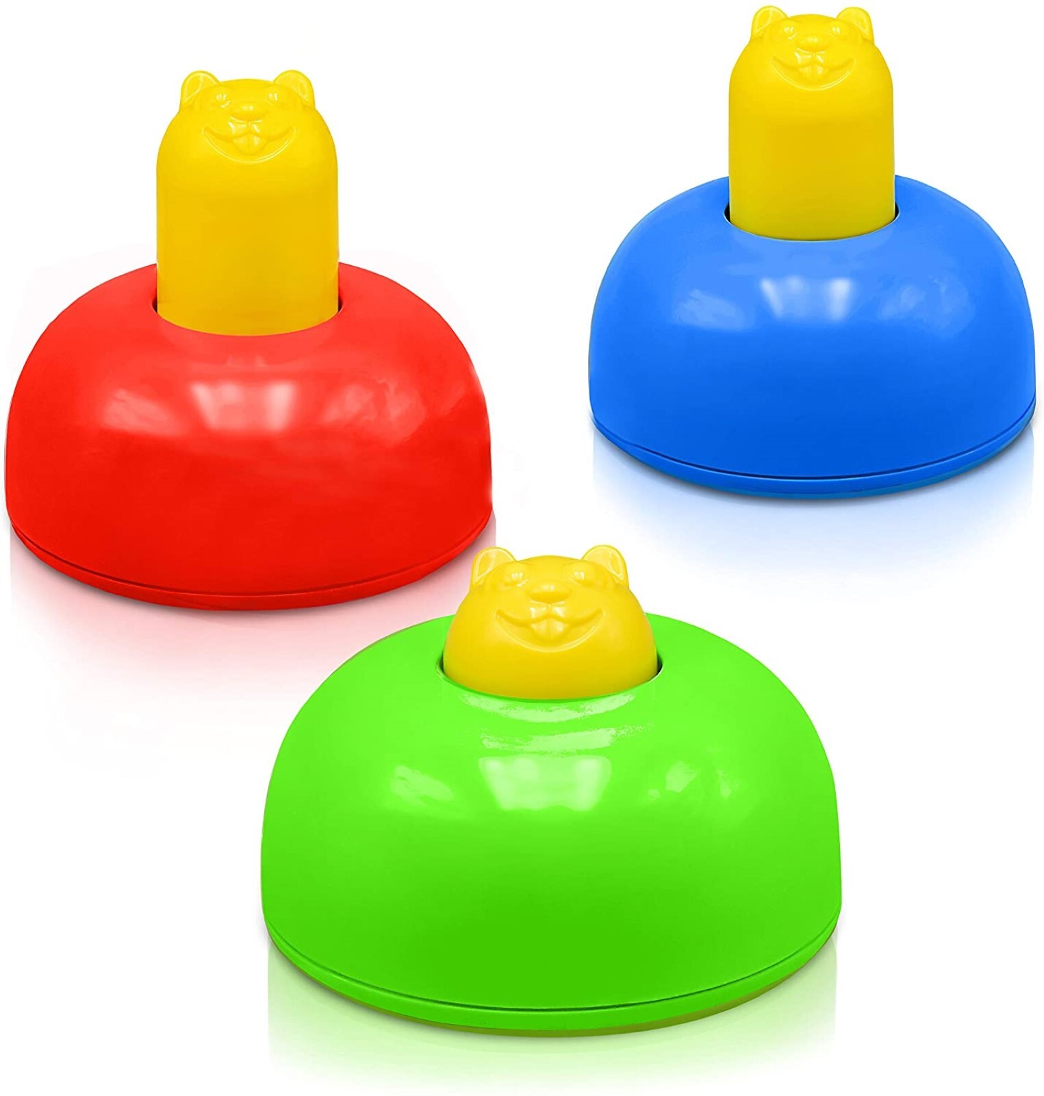 • The first player to push down and tag a game piece 10 times, wins