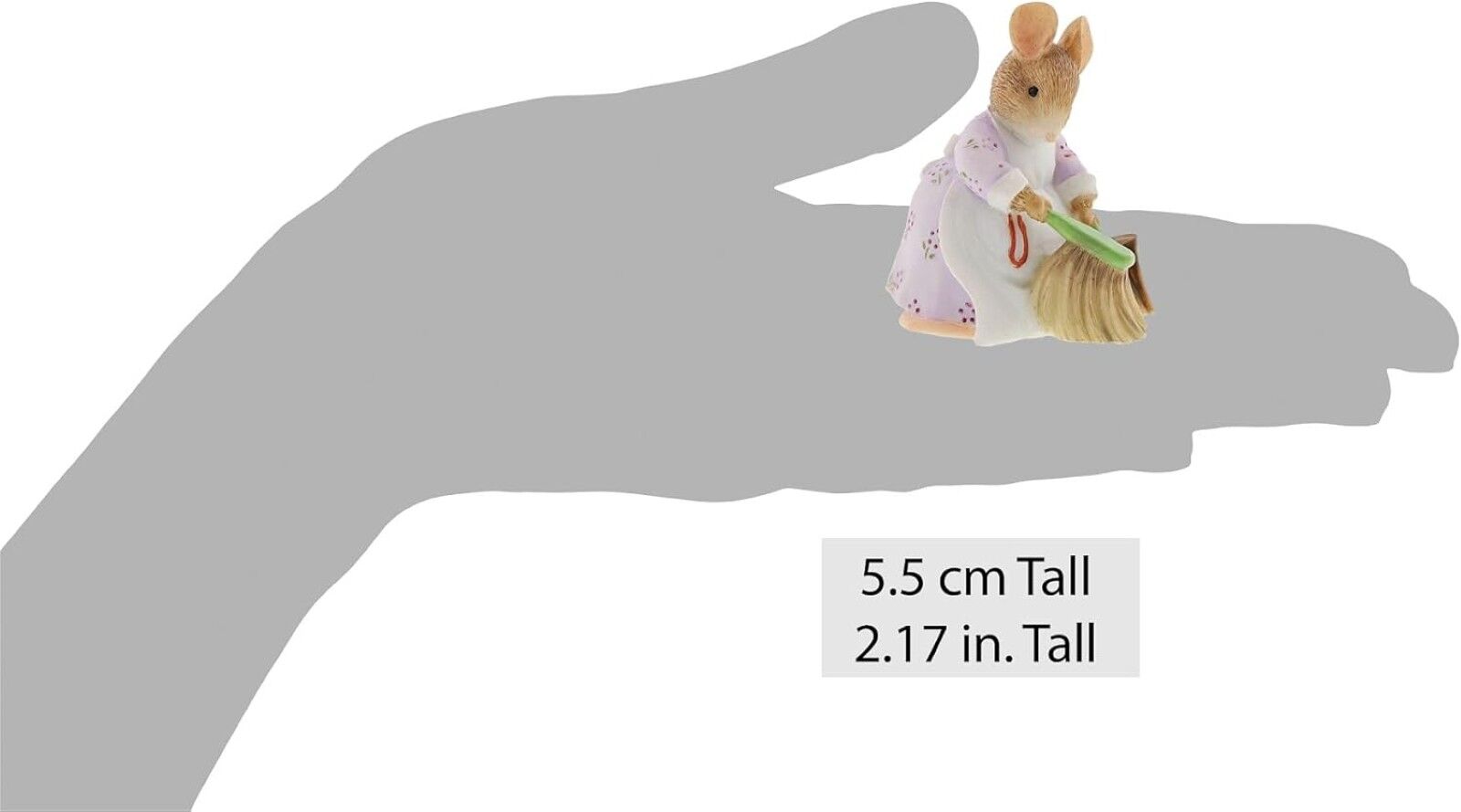 This charming Hunca Munca figurine, showing a mother mouse sweeping makes a treasured keepsake or Mother's Day gift. An iconic pose, taken directly from The Tale of Two Bad Mice by Beatrix Potter, helping to bring the featured characters to life.
