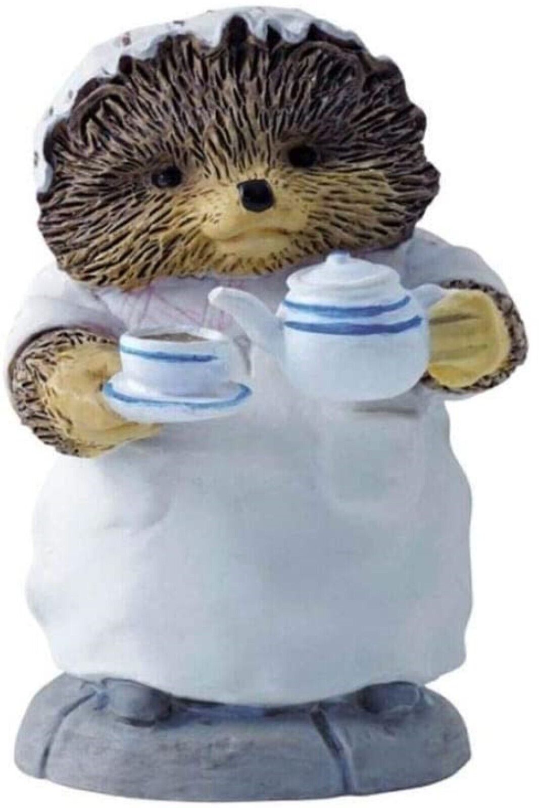This charming figurine features a hedgehog washerwoman called Mrs Tiggy-Winkle. The story of Mrs Tiggy-Winkle depicts her encounter with a human child named Lucie. The two deliver freshly laundered items to the little animals and birds of the forest.