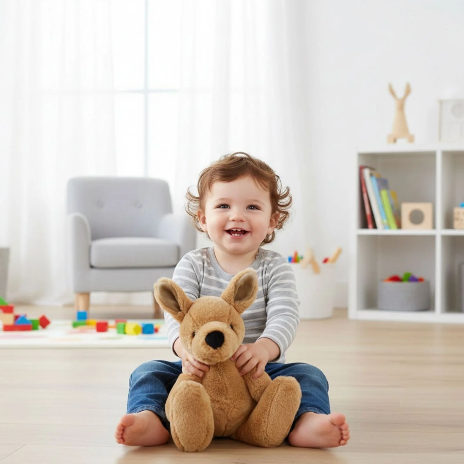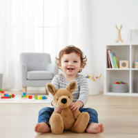Scout is a handmade, high quality-made baby fluffy Kangaroo soft and cuddly stuffed plush toy. Perfect for little hands to hug. Made with safe, high-quality materials, they are durable and snuggly for comfort, playtime fun, and to help spark curiosity all while bringing a touch of the Aussie bush. Inspired by a real kangaroo, Australia's iconic marsupial with strong legs, a powerful tail, and a pouch where mothers carry their babies, called joeys.