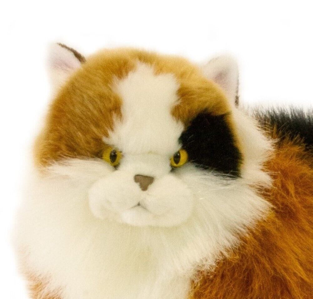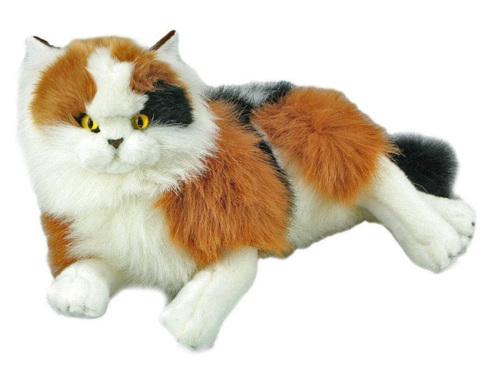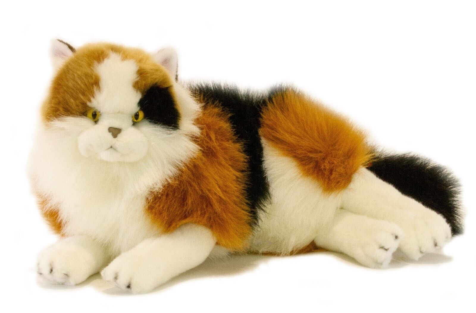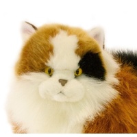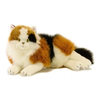 Marmalade is a lying Calico cat and is a realistic soft plush toy. She is a premium quality handmade soft long-haired yellow-eyed cat and is very cuddly.
