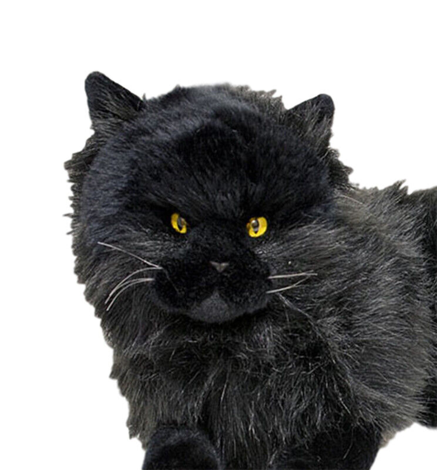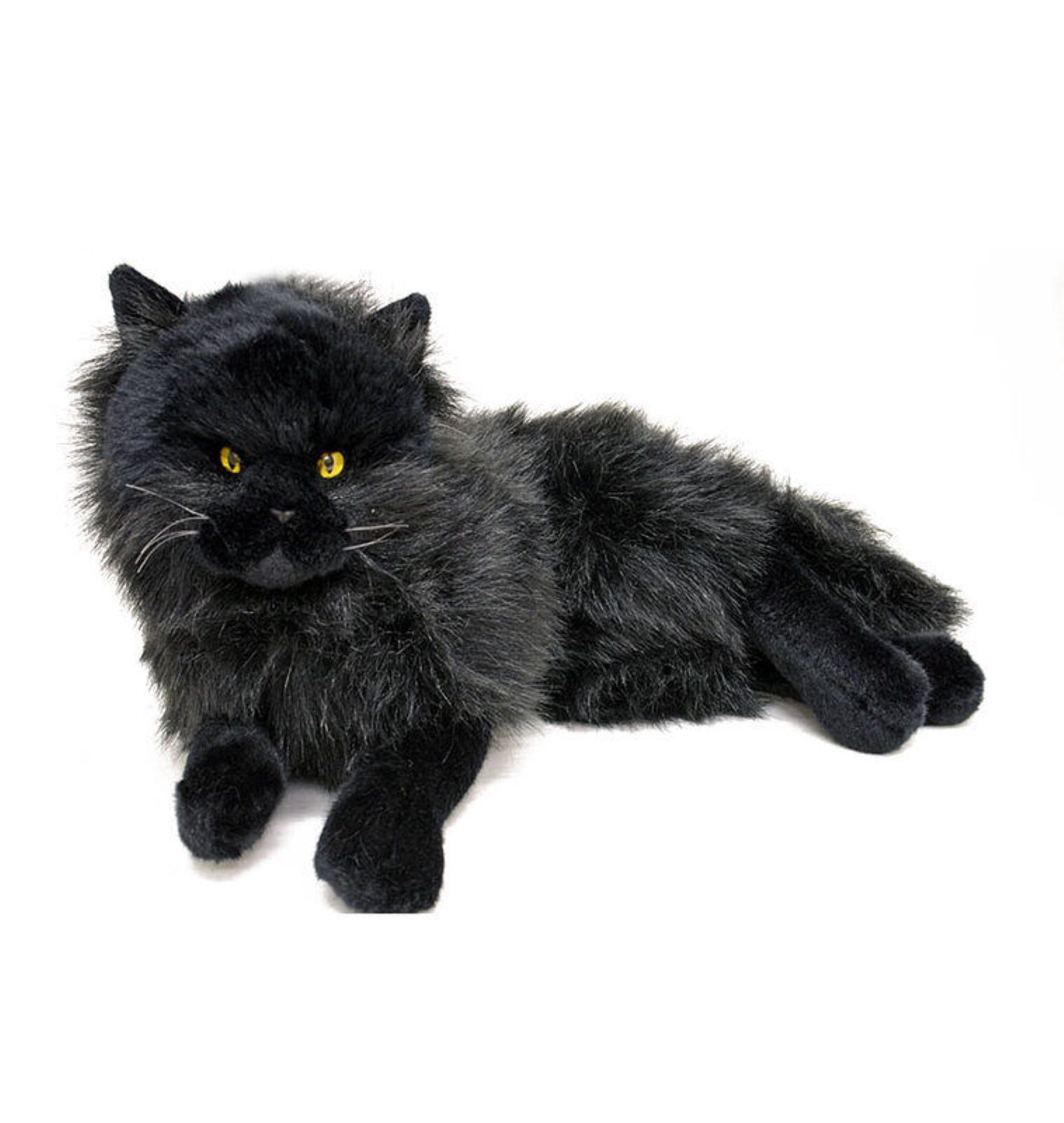 Onyx is a lying  and is a realistic soft plush toy and is a premium quality handmade soft long-haired yellow-eyed cat and is very cuddly.