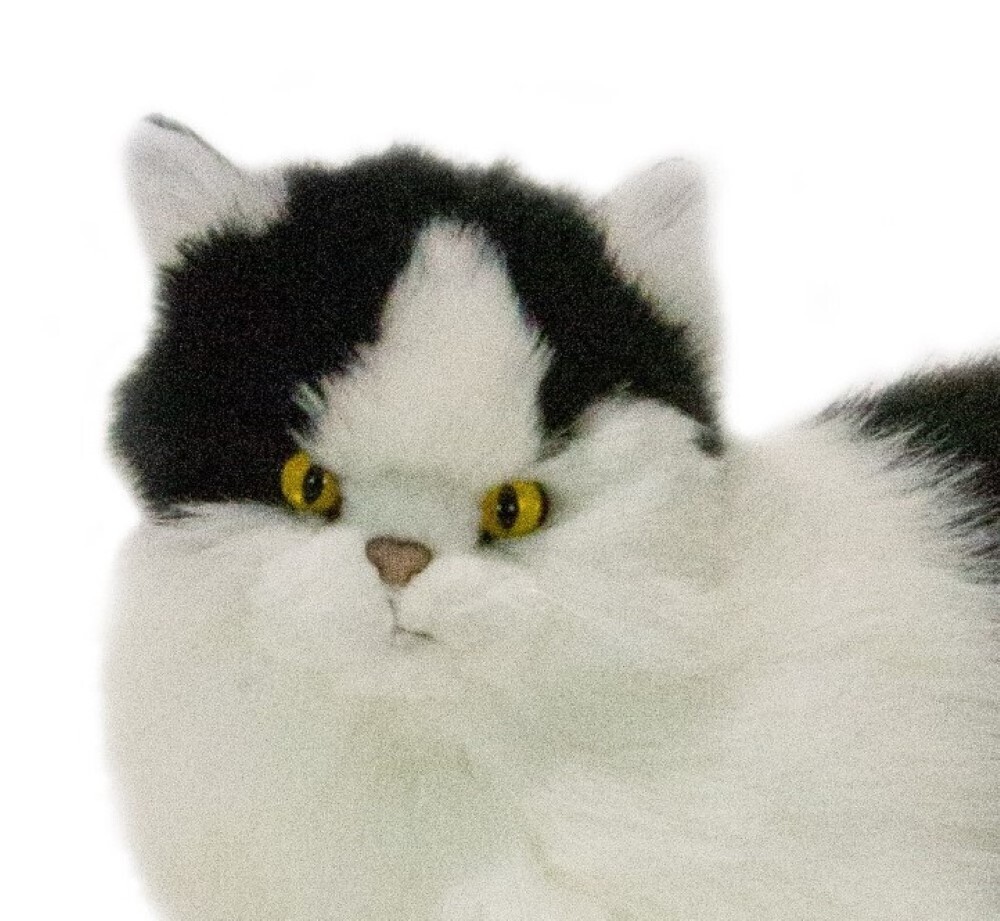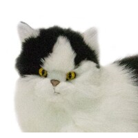 Woodrow is a lying Piebald cat in white and black colour and is a realistic soft plush toy.  He is a premium quality handmade soft long-haired cat and is very cuddly.