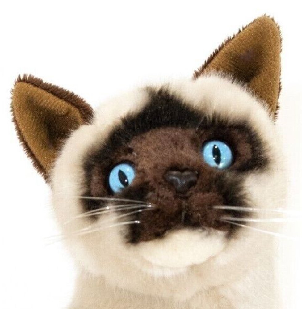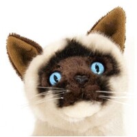 Noodles is a sitting Siamese cat and is a realistic soft plush toy.  This siamese cat is a seal point due to the cream body and dark brown points.