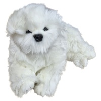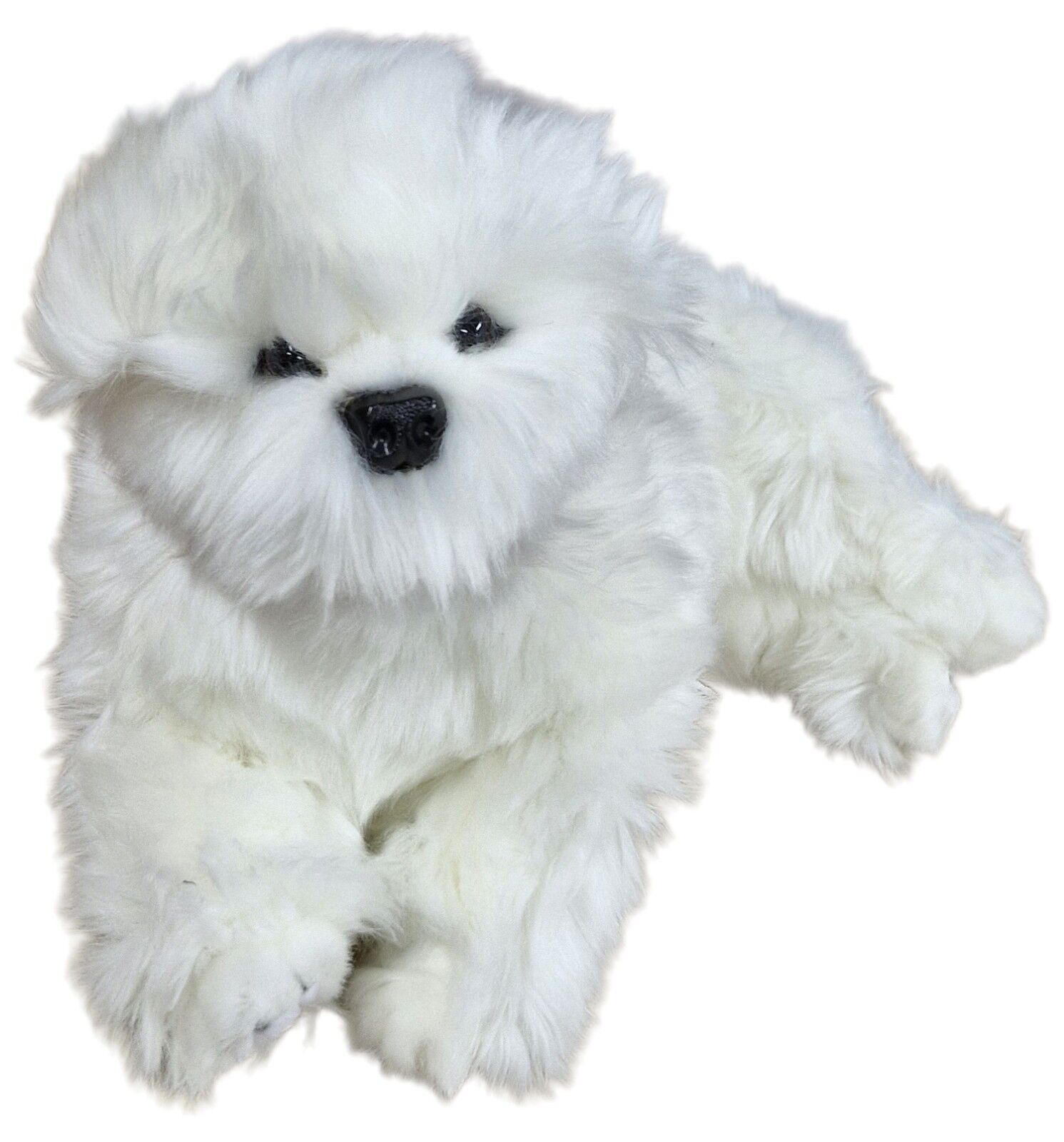 Annabelle is a realistic fluffy white plush Bichon Frise dog toy in a lying position.  A soft handmade stuffed dog toy with long caress-able fur.