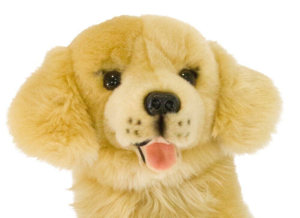 Golden retrievers are the third most popular family dog breed and Goldie is ready to be cuddled by all family members as he is so soft.  Goldie is a soft medium sitting plushie with a shaggy chest