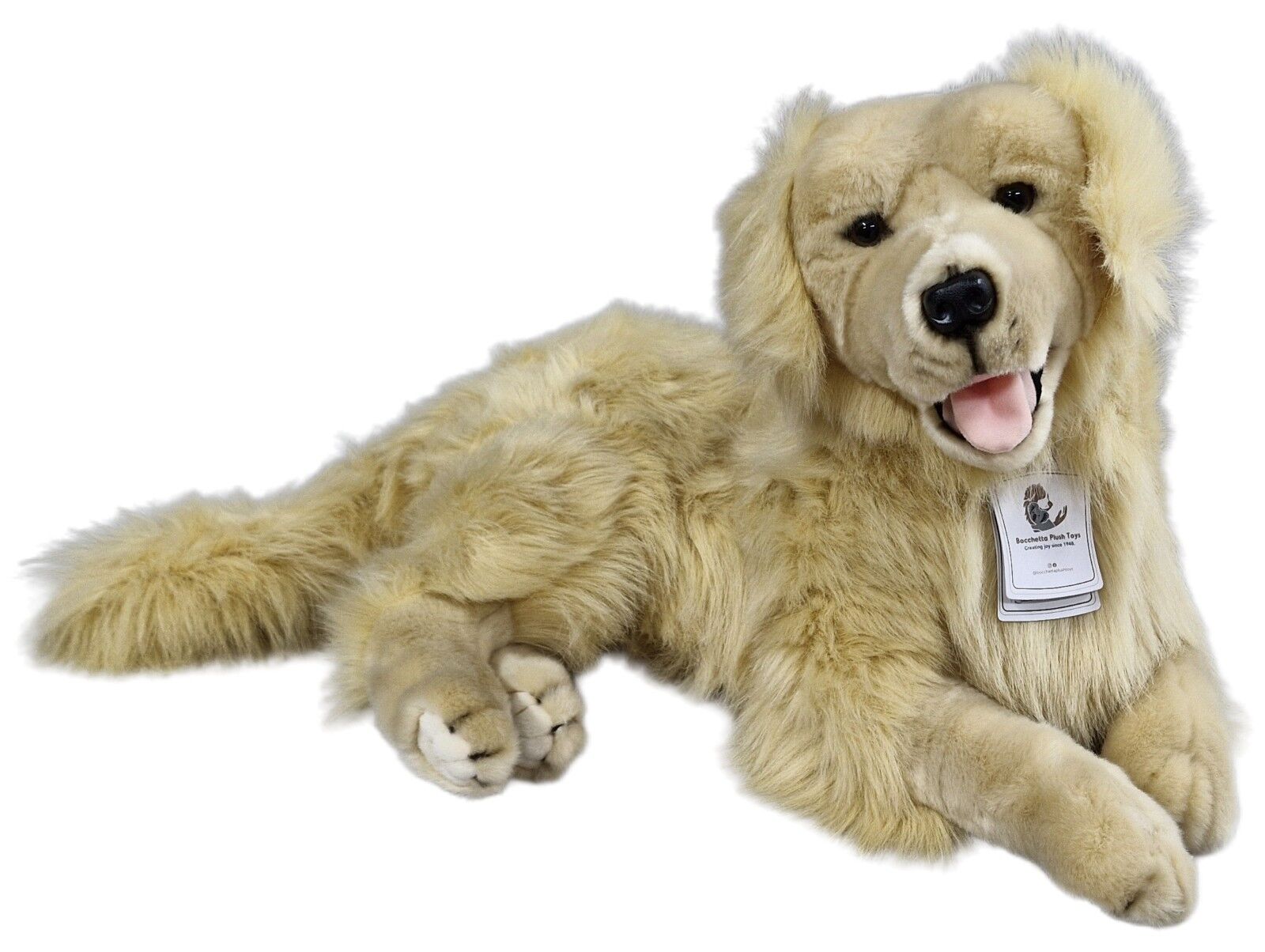 Luna comes with a satin pocket/pouch with zip and is a really cute quality made realistic extra-large Golden Retriever stuffed plush toy in a lying position.
