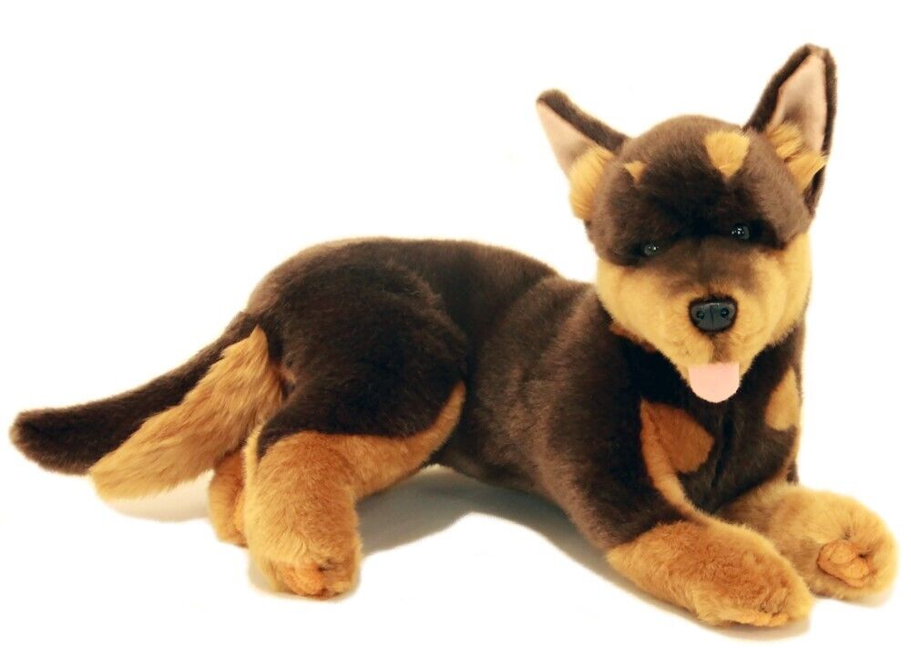 Parker is a really cute realistic handmade and airbrushed lying red and tan Australian kelpie plush toy.  They are also simply called Kelpie, Australian sheepdog or muster dog and are well known for being loyal, keen and friendly dogs.