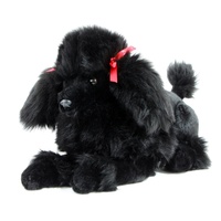Romeo is a crouching black Poodle and is a realistic soft plush toy.