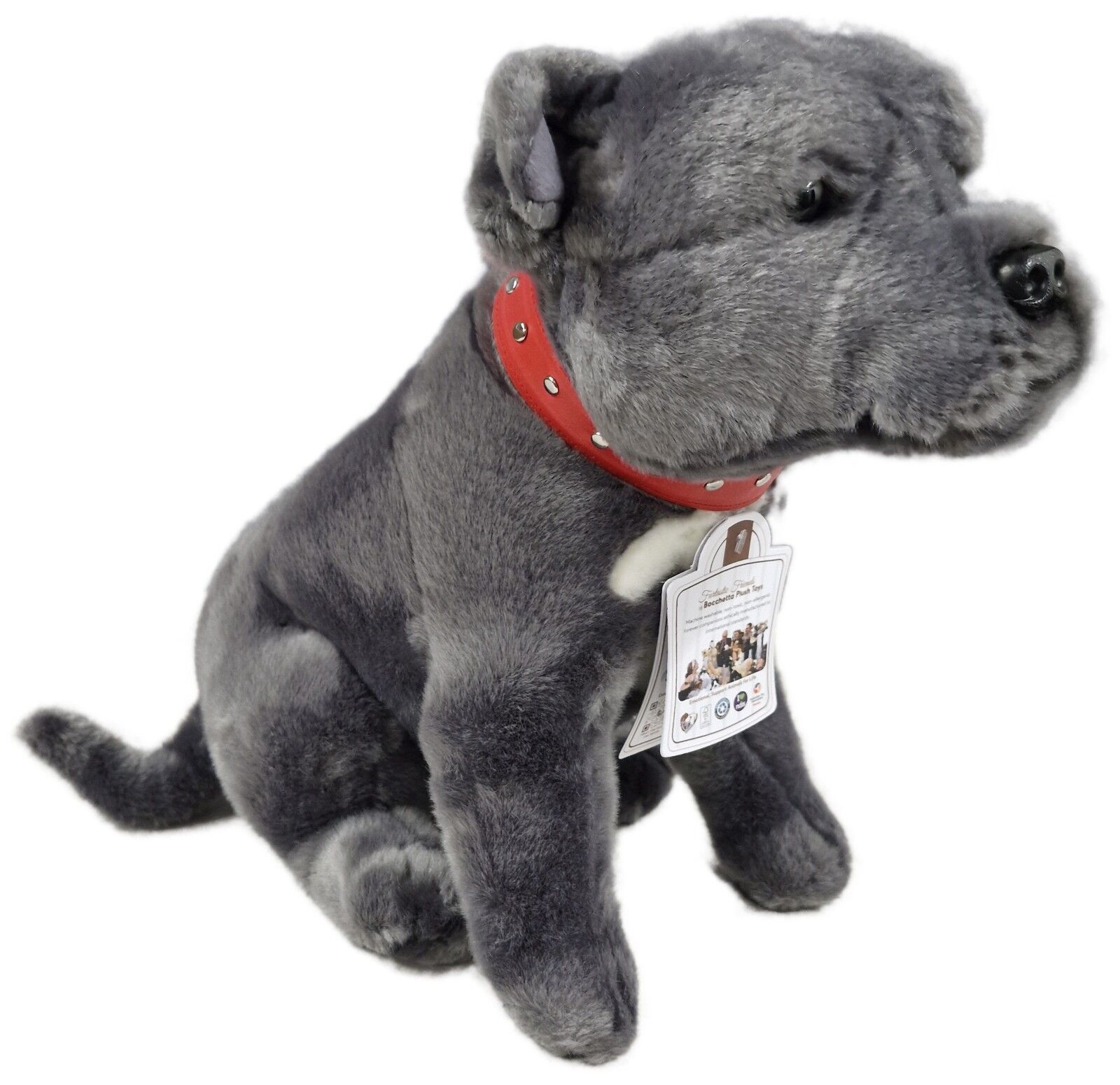 Storm is an exquisitely soft and realistic handcrafted sitting Blue Staffordshire Bull Terrier plush toy.