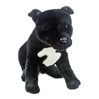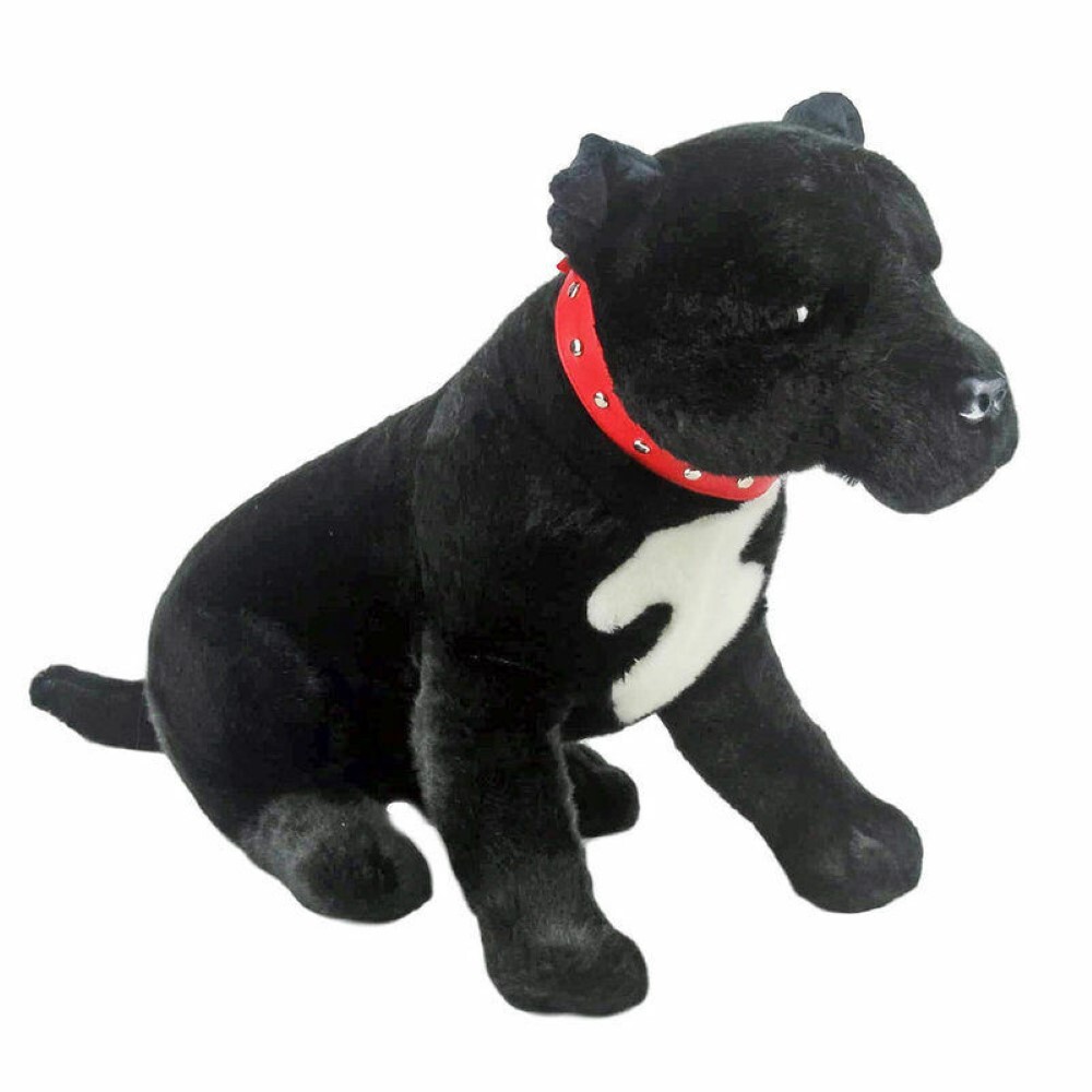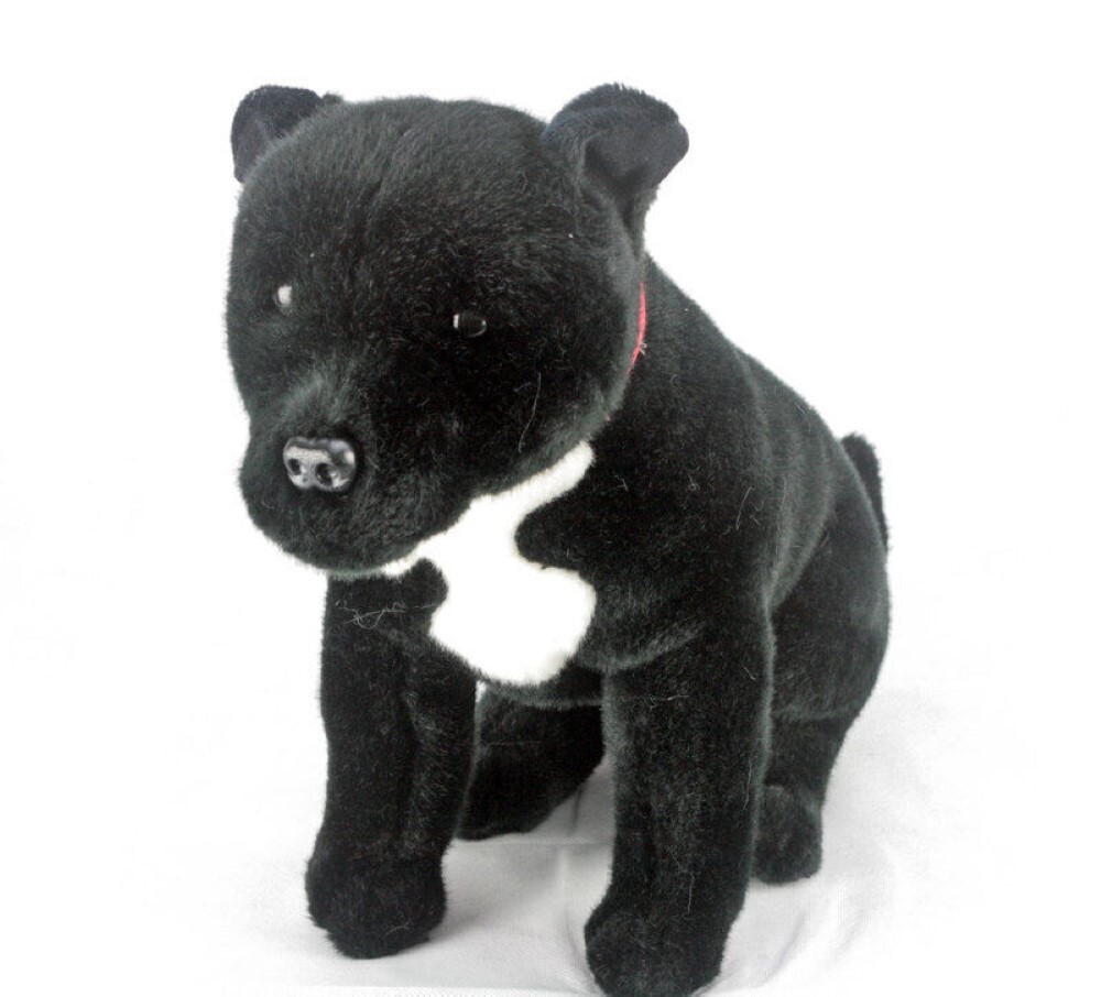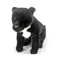 DJ is an exquisitely soft and realistic handcrafted Black Staffordshire Bull Terrier plush toy, stuffed animal.