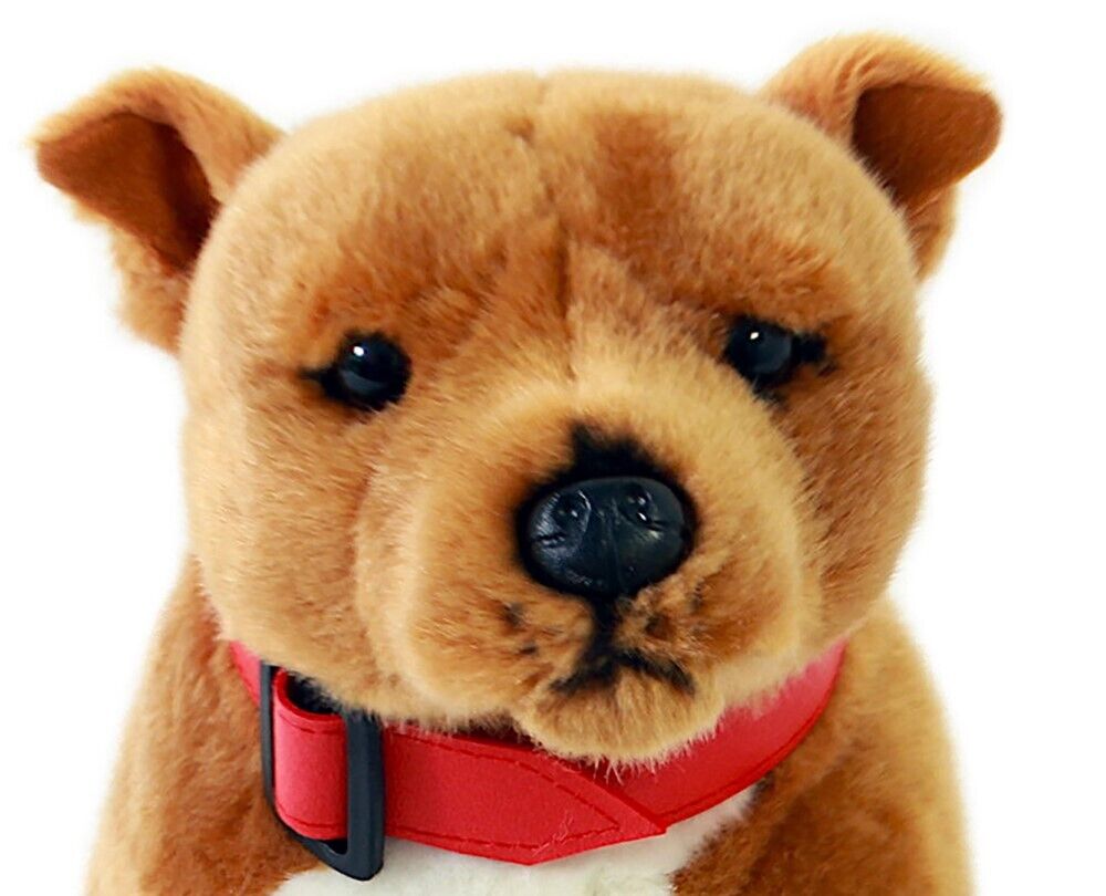 Lester is an exquisitely soft and realistic handcrafted Red Staffordshire Bull Terrier plush toy.
