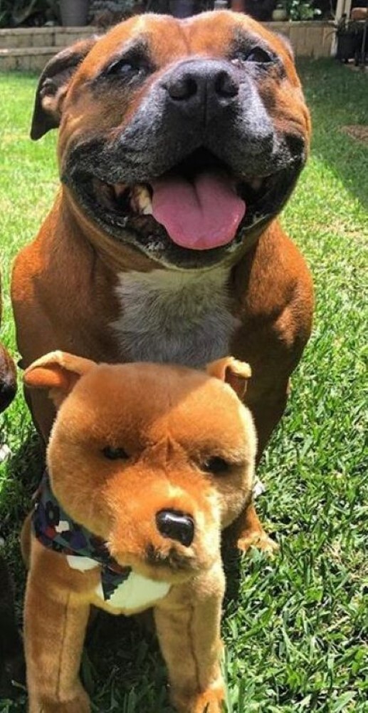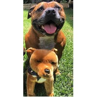 Staffies are extremely active, strong, tenacious, robust, courageous, and enthusiastic.  They are also very loyal and quite protective and make the most wonderful family pet and companion and have been nicknamed “The Nanny Dog” because they are known to be so good with children.  They do, however, need to be trained from a very young and kept occupied and exercised regularly otherwise, they can’t stop from becoming a little bit destructive.