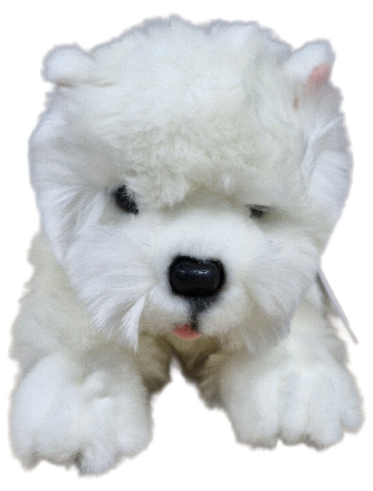 Pookie is a really cute realistic handmade stuffed West Highland White Terrier puppy soft toy.  Our lying down Westie puppy will never grow up so you will have a cuddly soft plushie to always cuddle.