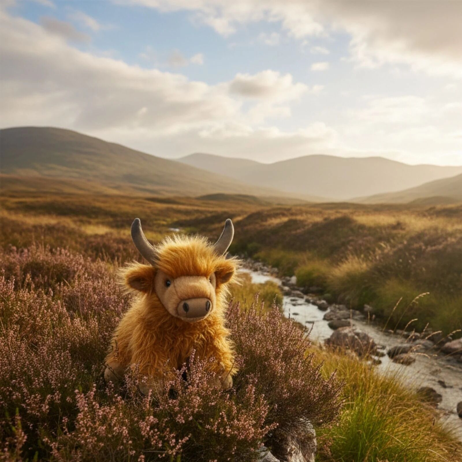 Buttercup is a handmade, high quality-made Highland cow soft stuffed plush toy.