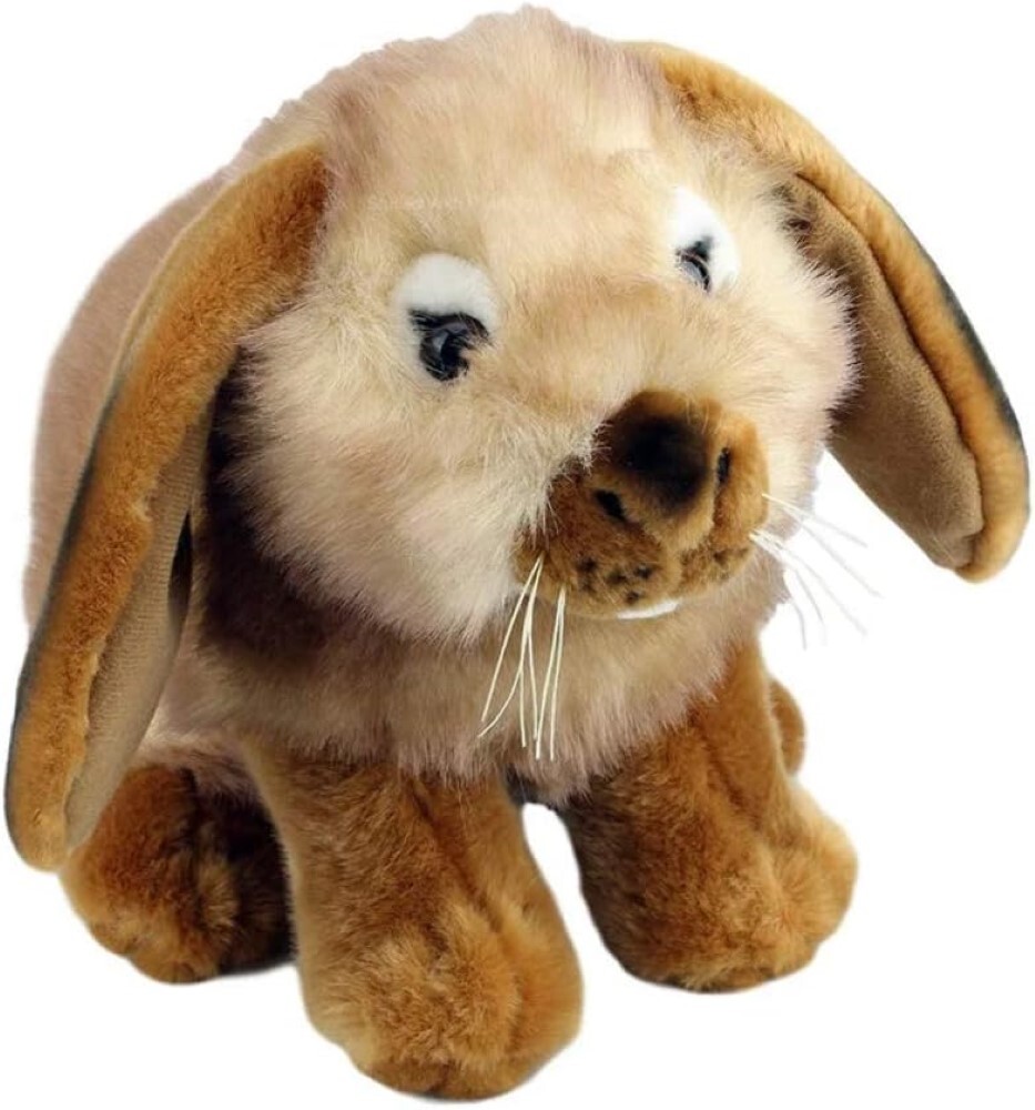 Cinnamon is a really cute realistic handmade lop-eared rabbit.  This sitting brown lop-eared rabbit, which is also known as a lop rabbit, has soft velour ears that droop and soft caressable plush fur.   Cinnamon makes a great bunny friend for young children and adults and is waiting for heaps of snuggles.