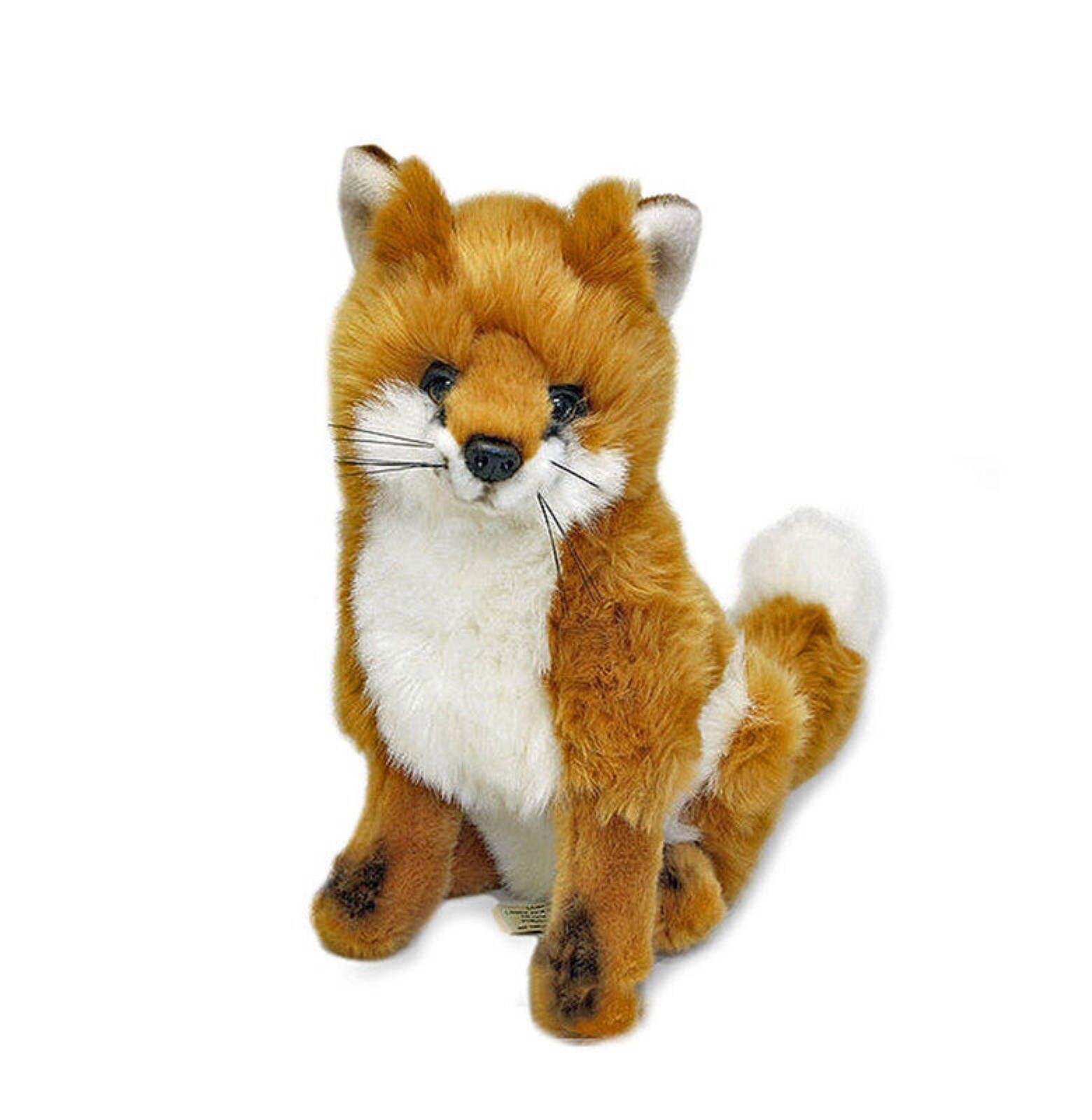 Reynard is a realistic small-size stuffed red fox in a sitting position.