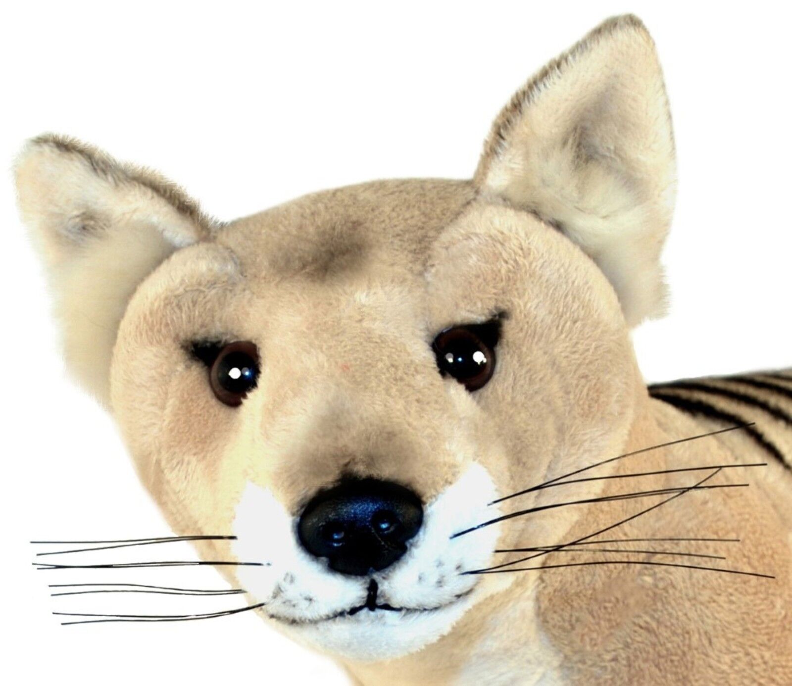 Cooper is a handcrafted large-size realistic Tasmanian Tiger soft plush toy in a standing position with hand airbrushed details.