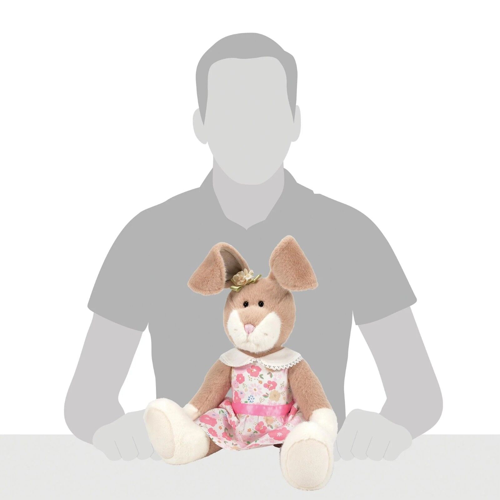 This adorable bunny is ready for any occasion with her festive, floral dress with matching pink belt.
