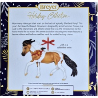 How many riders got their start on the back of a plucky Shetland Pony? This year's fun Beautiful Breeds Ornament, designed by artist Sommer Prosser, is a nod to the charismatic and athletic steed that was the introduction to the horse world for so many!