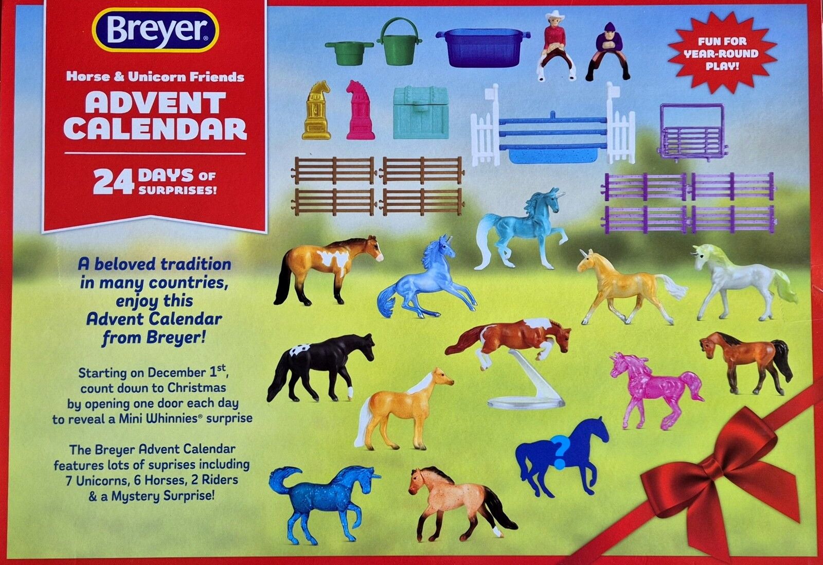 What could make the anticipation of Christmas even more magical? How about discovering a new horse or unicorn surprise each day! Open one of the 24 doors each day leading up to a Christmas to reveal a surprise Mini-Whinnies- scale horse, unicorn or accessory. A countdown and an engaging gift featuring year- round play, all in one!