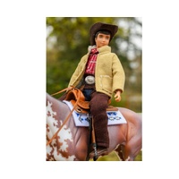 Meet Bryce - our new cowboy who is ready to ride!  This fully articulated rider figure stands 20.3cm Tall (8" tall)  and comes with jeans/chaps, belt with big silver buckle, ranch jacket, and cowboy hat. Bryce will round out your staff in your Breyer farm and is ready to get to work!