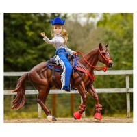 Joining Breyer's stable is Cassidy, our newest cowgirl! She is ready for the show pen in her sparkly white shirt, blue pants with fringe, belt with a big silver buckle, and her cowboy hat and boots!  This fully articulated rider figure stands 8' tall and is ready to complete your Breyer farm setup.