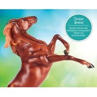 Wild and noble, Mustangs stand as powerful symbols of freedom and the American West. Captured in a dynamic rearing pose, this chestnut stallion is a picturesque example of his breed's undeniable spirit.
