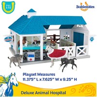 The Deluxe Animal Hospital is a Breyer fan favorite and now comes in an all new fresh color scheme for 2020! When animals are in need of care, the Stablemates Deluxe Animal Hospital is the place to go! Future veterinarians will enjoy hours of creative play. Hospital features sliding doors, roof panels that flip open, attached paddock, exam rooms, and grooming center.