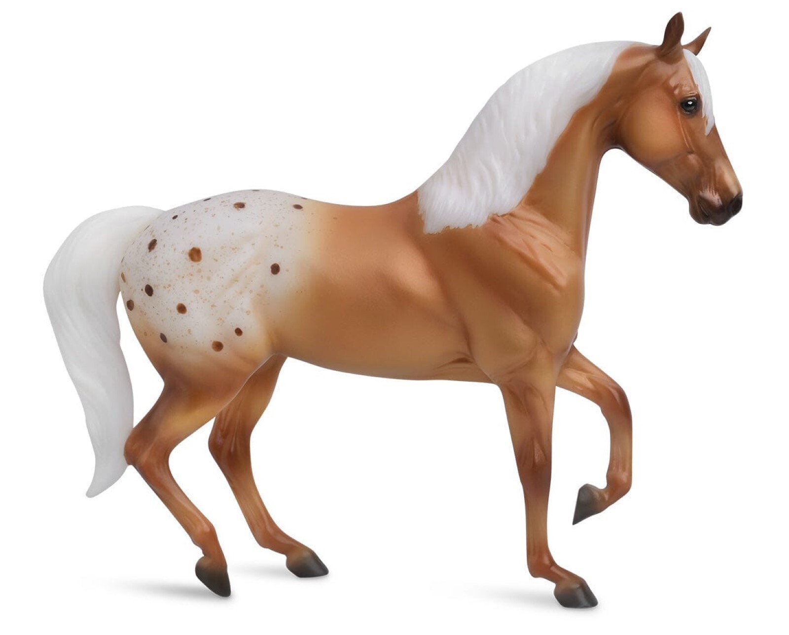 This fun set includes a palomino blanket Appaloosa and her chestnut leopard Appaloosa foal.