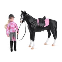 Whether riding in the show ring or for a round of practice, our English rider and her beautiful horse are ready to leap into action! This horse and rider set includes a 15.2cm tall  (6”) posable rider in pretty pink riding gear, a Freedom Series horse, a pink saddle pad to match the rider's outfit, an English saddle, and bridle.