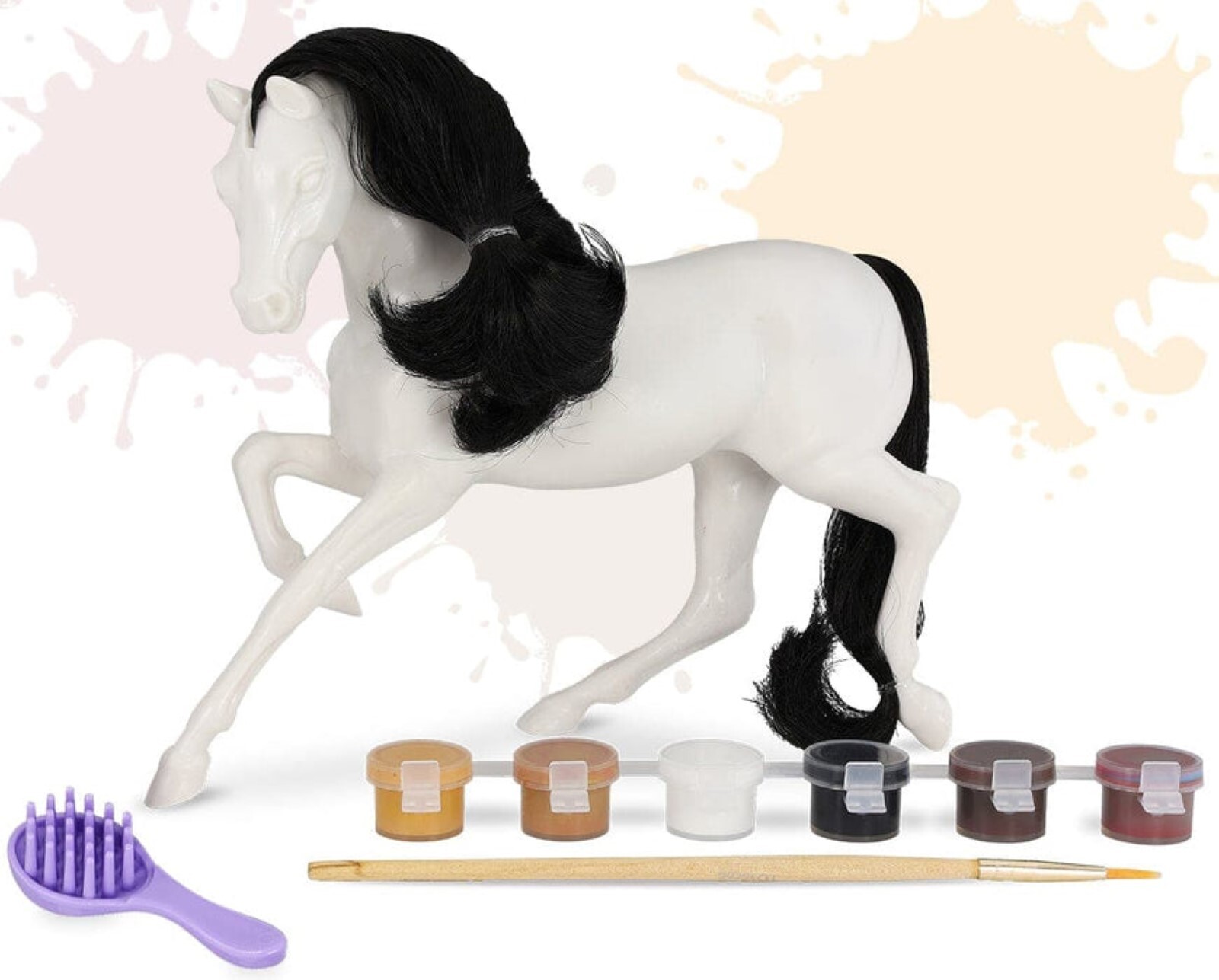 This fun kit includes everything needed to paint a your own personal model - an unpainted horse, one paintbrush, six paint pots, and a hairbrush for the brushable mane and tail. It's a toy and a craft - all in one!