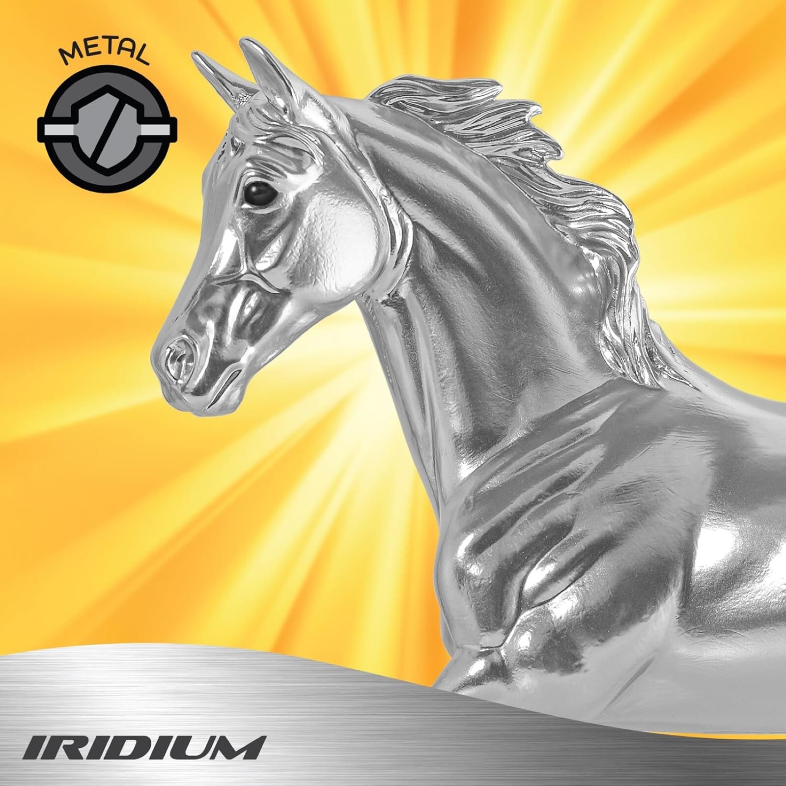 Iridium (METAL) s a focused stock horse who represents the tough and hard-working metal-type horse.  Her glossy, shimmering silver coat represents the second-densest natural metal, iridium.