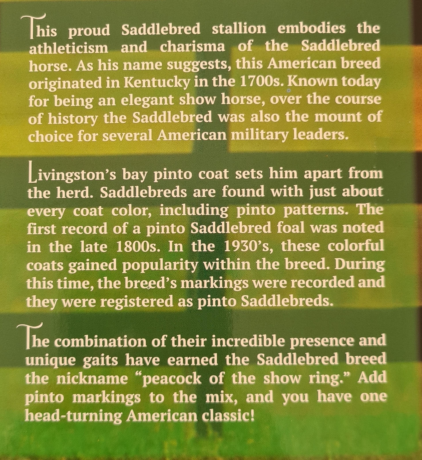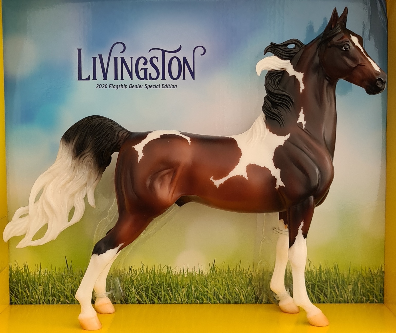 Breyer’s Livingston Traditional Flagship Dealer Model is an incredibly beautiful bay pinto horse model sculpted in a proud, standing position.