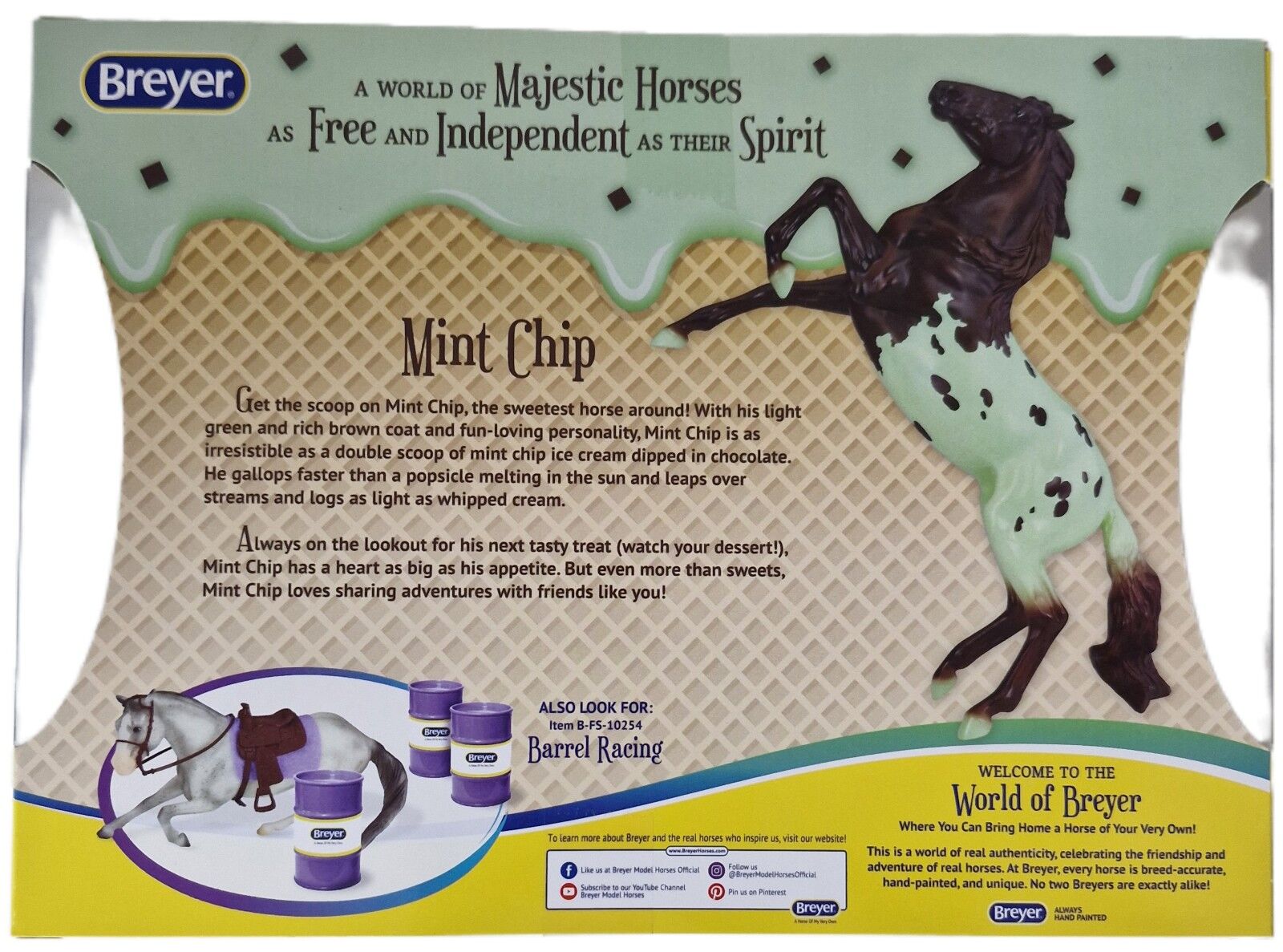 Looking to add something decadent to your collection? Mint Chip has the scoop: he's the sweetest horse around, and he'll fit the bill perfectly! This ice cream-inspired appaloosa has a rich brown coat with a mint green blanket and hooves. Delicious!
