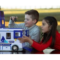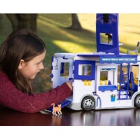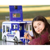 Along with the vehicle, this set includes a ladder, two chairs, a water trough, tack clips, a feed bin, and the Rescue’s own dog, cat, and foal figures!