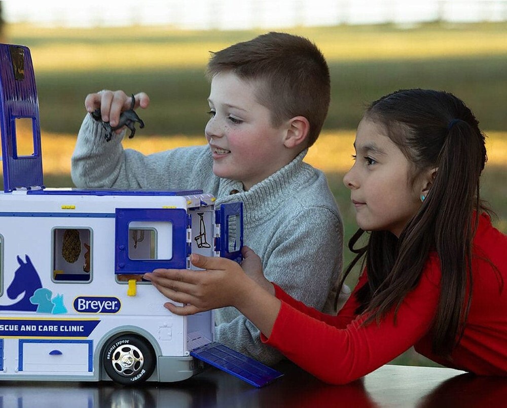 The Breyer Mobile Rescue & Care Clinic is a grand “playset on wheels” and offers an interactive play experience right out of the box with lots of opening doors and secret compartments!