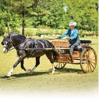 Don’t tell Nistar Blazing Kansas LOM that he can’t do something. Standing at 11.2 hands, “Kansas” competes in halter, trail, pleasure driving, and carriage driving for owner Cynthia Bellis-Jones of Fox Run Farm – often against Sporthorses much larger than him. He’s been named a National Champion in the Welsh Pony & Cob Society of America (WPCSA), Pinto Horse Association, the United States Equestrian Federation (USEF), and the United States Dressage Federation (USDF). His dam, the beautiful and talented GTF Blazing Ethel owned by Wayne & Nina Sue Stark, was a champion driving pony herself and obviously passed on her winning ways!