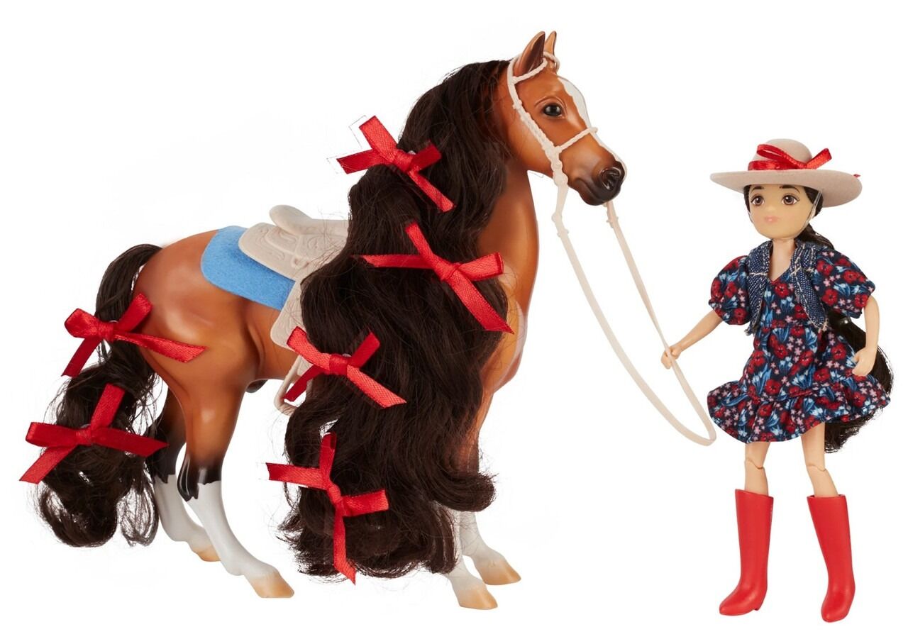 This fun playset includes a doll, full set of tack, six red ribbons, and a pony with brushable hair.