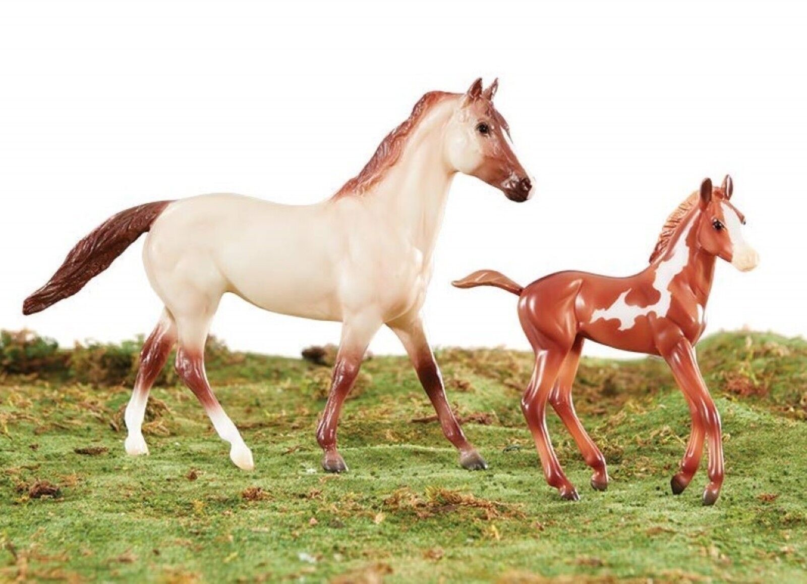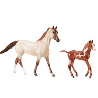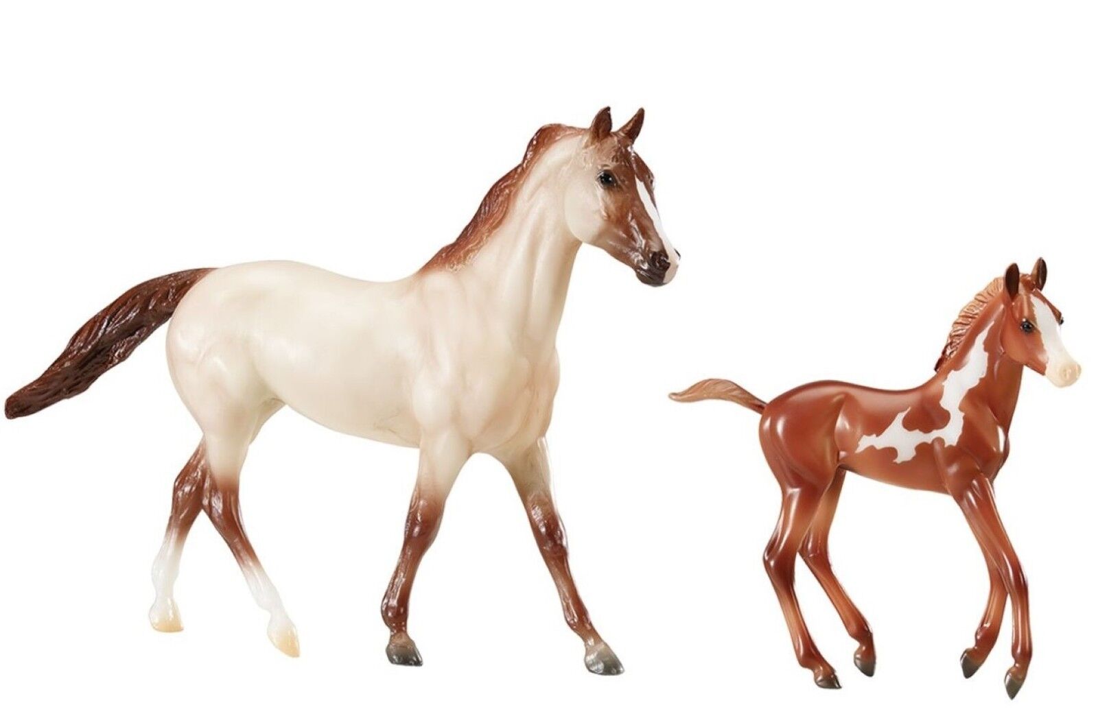 This set includes a red roan stallion and his chestnut pinto foal - colouring may vary to that shown