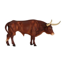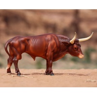 This breed of cattle originated in the United States from stock imported from Spanish and English origins. As settlers moved in to ranch the hot, humid land of what is now south Texas, they found the Longhorn to be perfectly adapted to the rugged conditions. These hardy cattle thrived during the long, dusty cattle drives that other breeds struggled with. Their tough, independent nature made them as well-known as the cowboys who guided them.