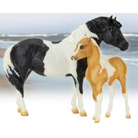 The sweet pair of the Phantom and Misty is presented on the original Misty and Stormy sculptures created by artist Chris Hess in the 1970s. To make this set even more special, it’s the first time Breyer has released models of the Phantom and of Misty as a foal!