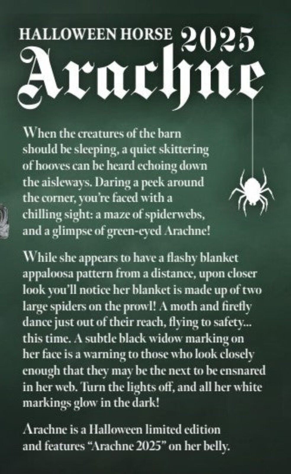 Arachne is a Halloween limited edition and features “Arachne 2025” on her belly.