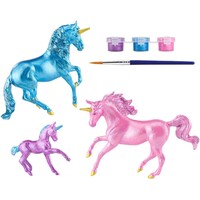 The complete set comes with everything you need to create a beautiful unicorn family, and includes 2 unpainted Stablemates unicorns and 1 Stablemates foal, 3 paint pots, and 1 paintbrush.