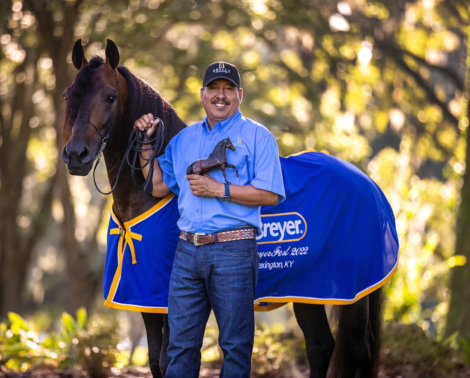 Breyer model horses are a triumph of artistry and refinement, capturing the indefinable presence and unique features that distinguish the spirit and personality of the real horse. Scuplted by talented equestrian artists, individually painted by hand and carefully detailed, Breyer models are without equal in authenticity and artistry. Whether a portrait model of a famous horse or accomplished champion, Breyer models are destined to become a centrepiece of a collection that will last an entire lifetime.