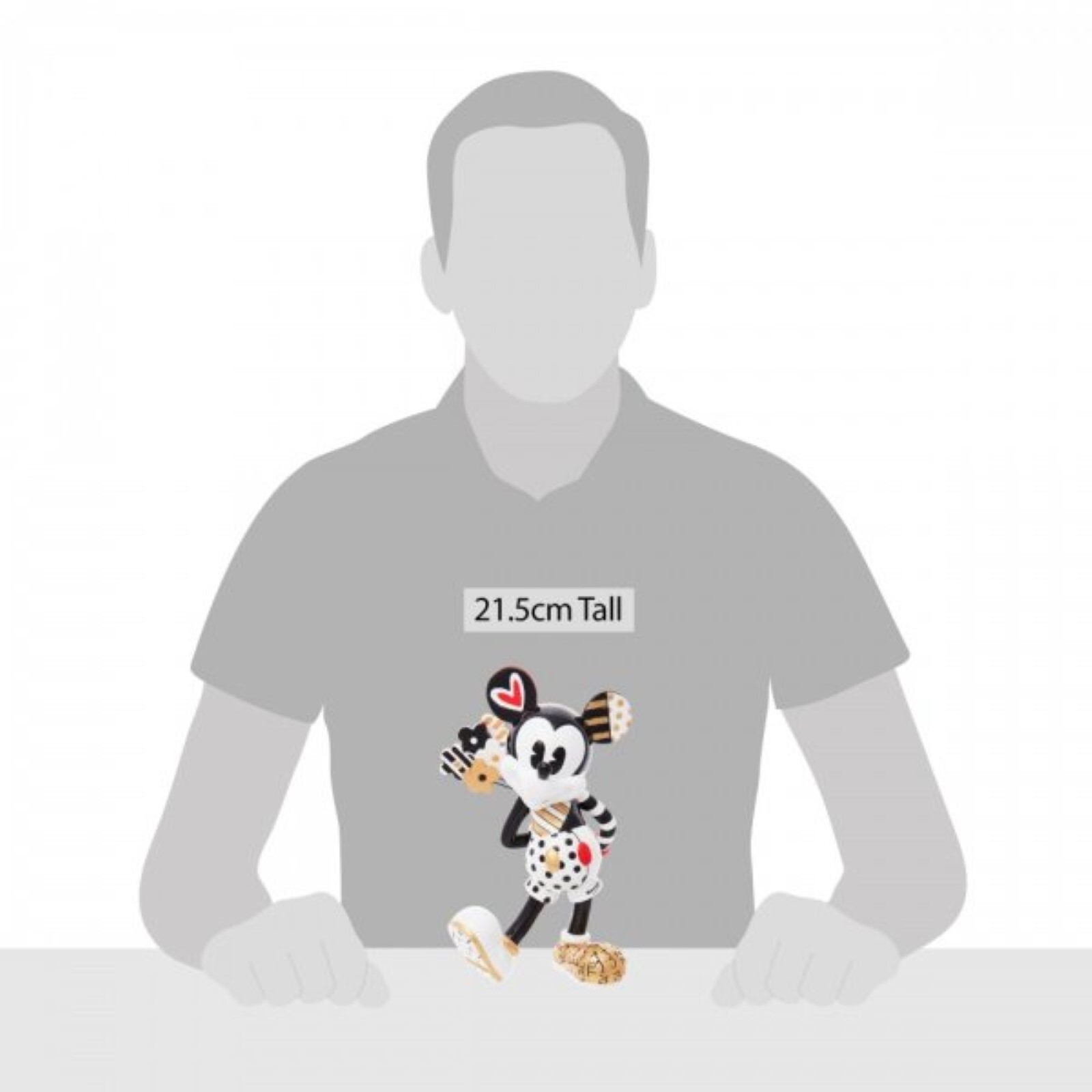 Mickey Mouse has been given the midas touch in this stunning 20cm large figurine designed by Romero Britto. Standing in with his hands behind is back, holding a bunch of blooming flowers,, this stunning piece showcases Mickey’s loveable personaility, and he even has a red heart icon is his ear. With strong contrasting accents in black, white, red and shiny gold, this retro Mickey Mouse design is a must for Disney and Britto enthusiasts.
