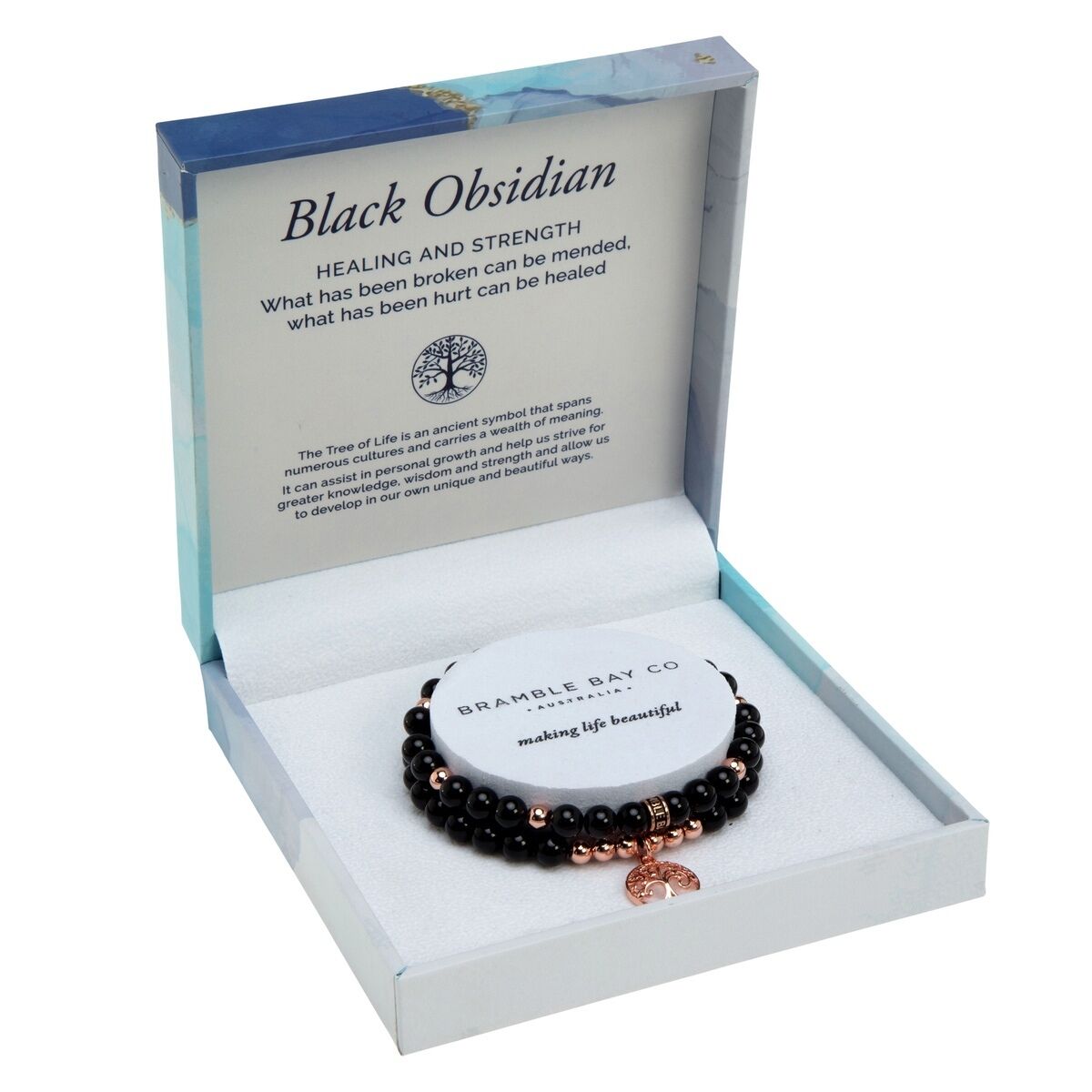 Crystal Carvings by Bramble Bay Tree of Life Duo Bracelet Set - Black Obsidian with Rose Gold