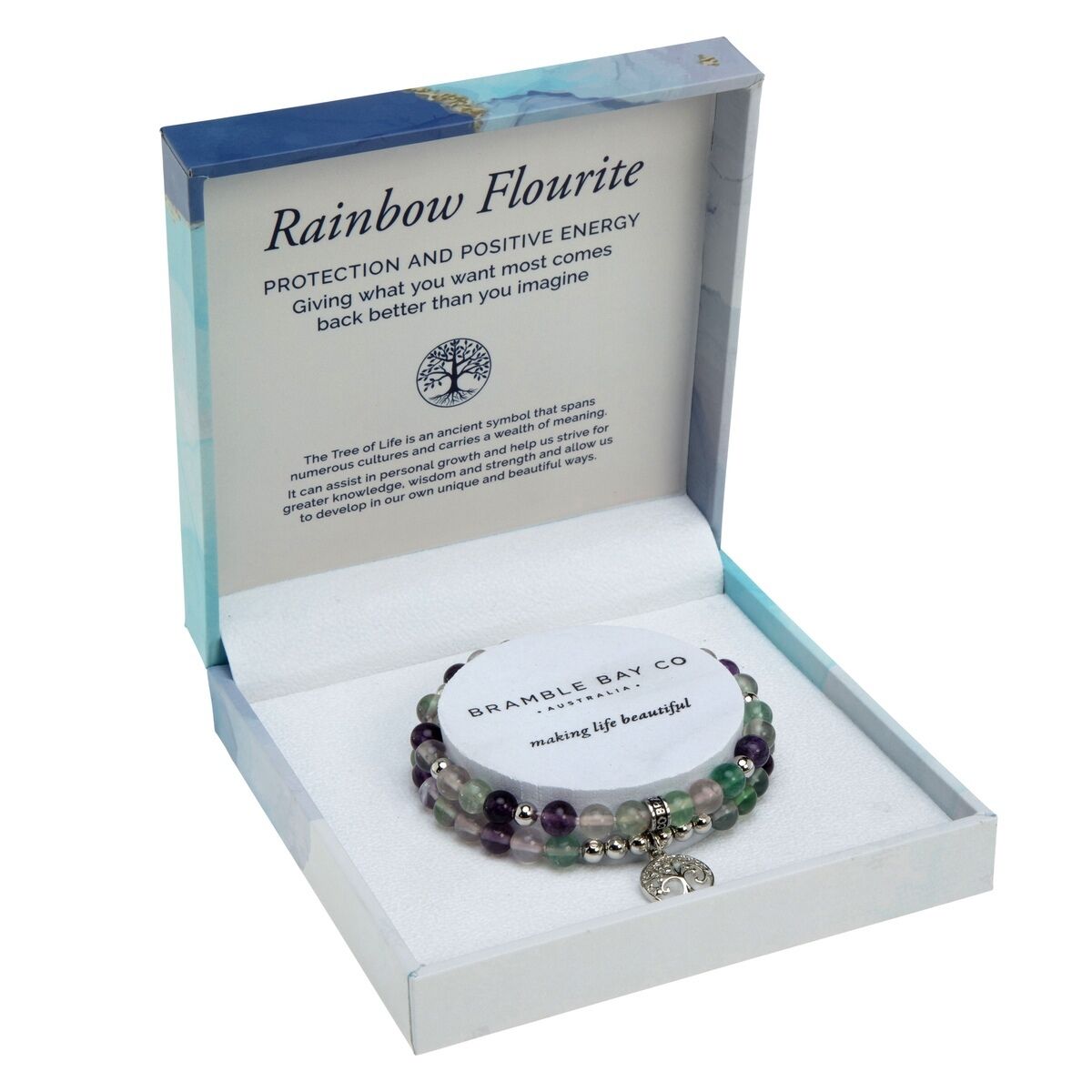 Crystal Carvings by Bramble Bay Tree of Life Duo Bracelet Set - Rainbow Flourite Rhodium
