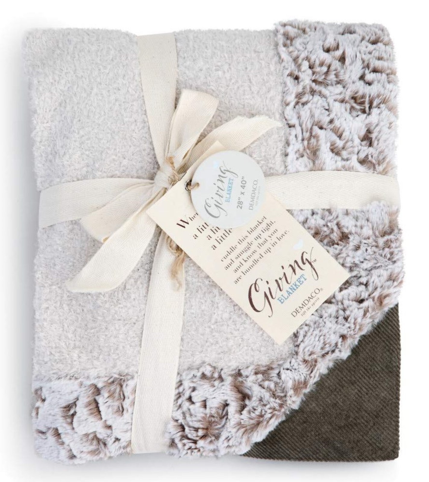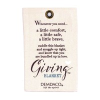 One corner of the blanket is made from brown corduroy, just like one of the ears of the Giving Bear! This reversible blanket comes with a hangtag that reads, "Whenever you need a little comfort, a little safe, a little brave, cuddle this blanket and snuggle up tight and know you are bundled up in love."