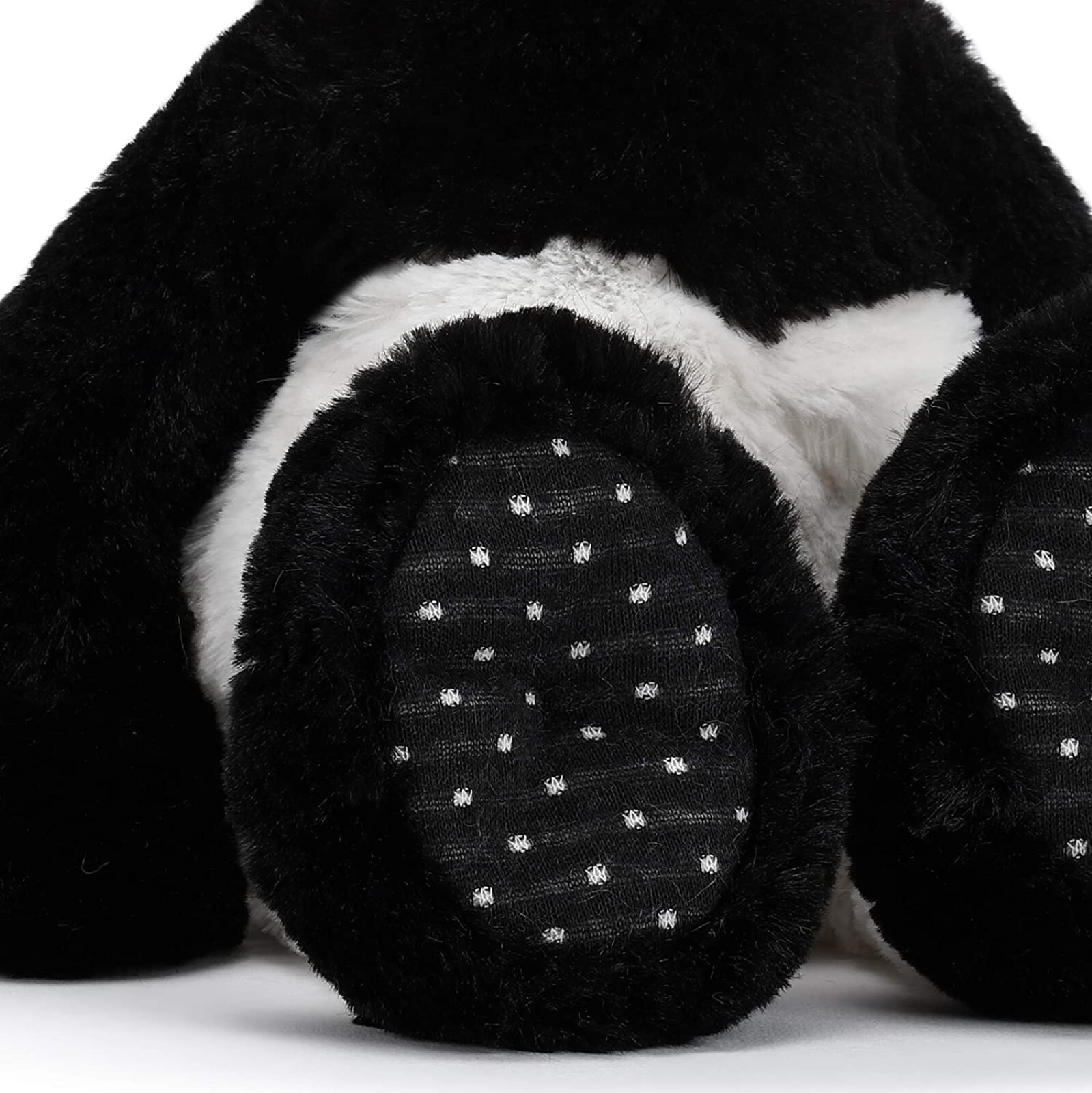 Made of soft polyester knit in a black and white pattern with polka dot accented feet and eyes and a satin thread nose.